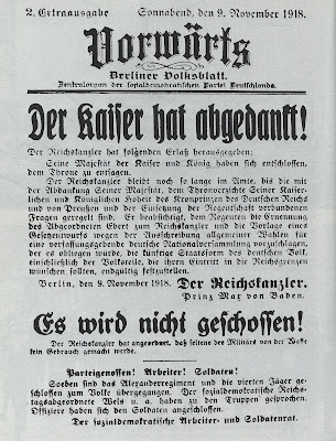 It's worth noting, too, that the previous year the Kerenski government in Russia that took power in the February 1917 revolution also made the fateful decision to continue their war against Germany. It didn't work out well for them. Ebert and Philipp Scheidemann weren't fools enough to ignore that experience, either!